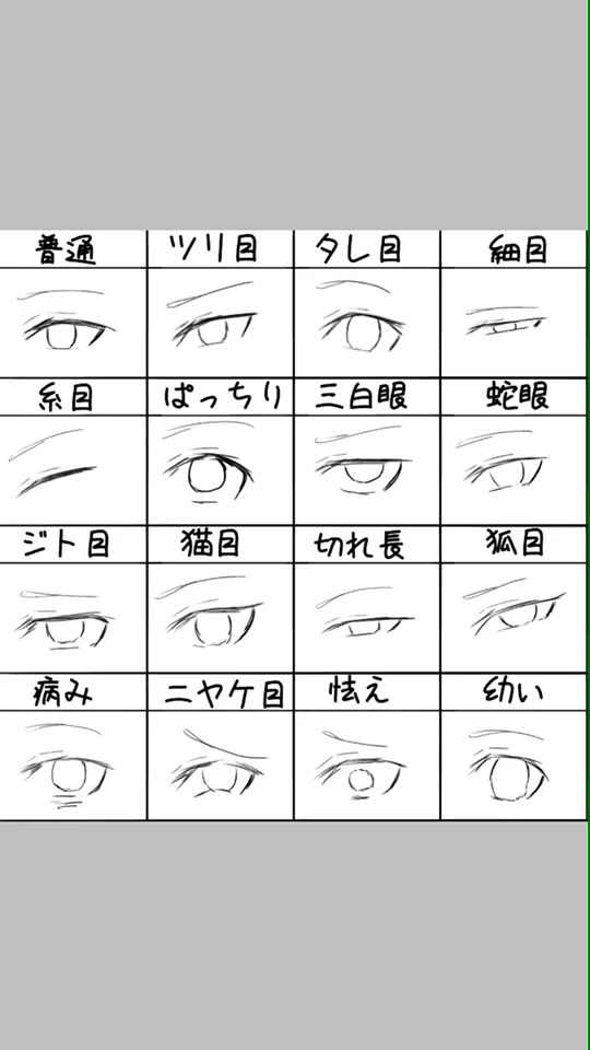 男の目の形 Sai Eye Shape Chart Anime Eye Drawing Shape Chart